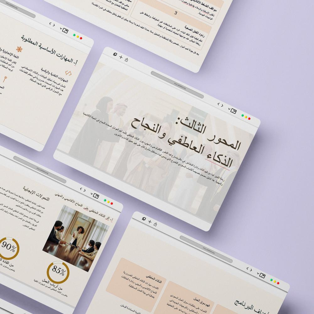 • ٣ عروض تقديمية متكاملة، تغطي جميع المحاور الواردة في الكتاب الصادر عن المركز الوطني للمناهج.