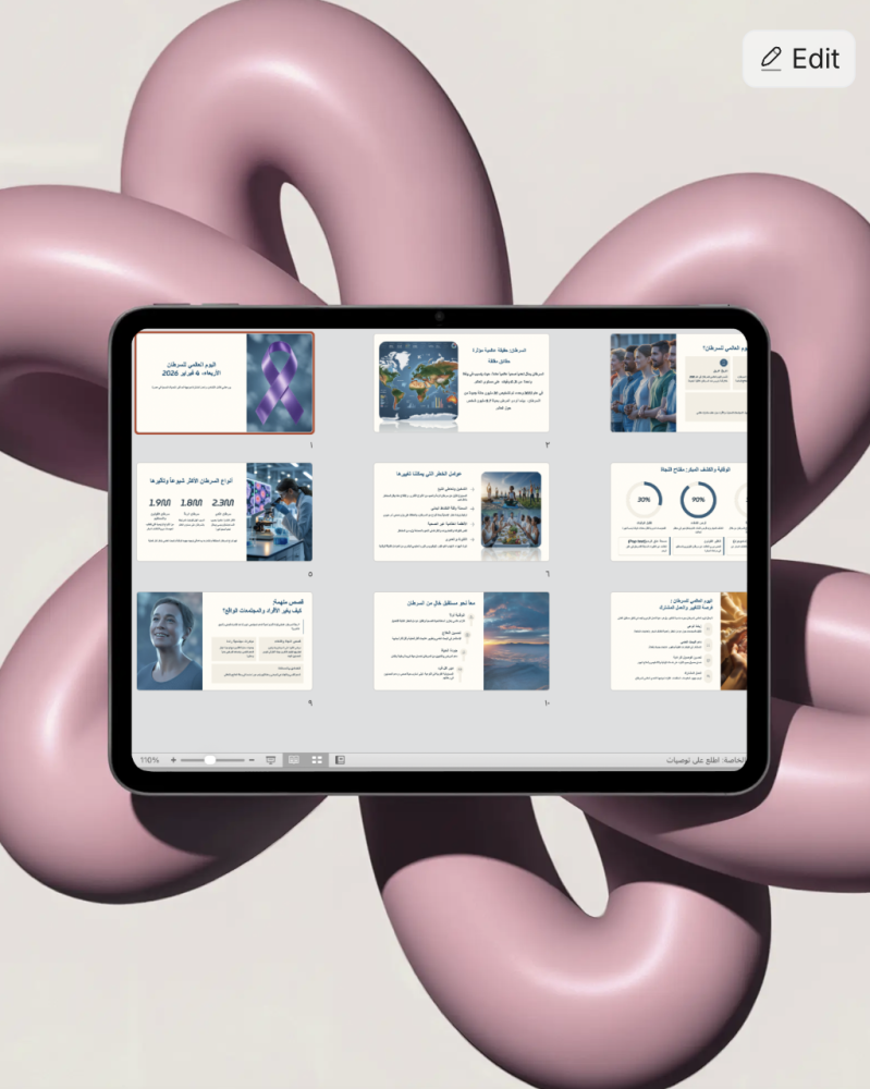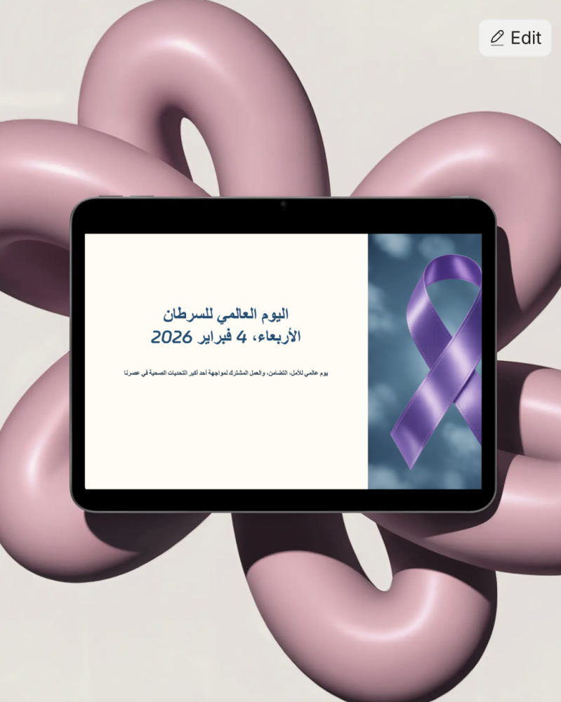 احتفاءً بيوم السرطان العالمي، يأتي هذا العرض التقديمي ليكون أداة توعوية فعّالة تساعد المدارس والمراكز الصحية والمؤسسات المجتمعية على نشر الوعي وتعزيز ثقافة الوقاية والكشف المبكر.